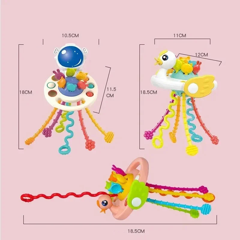 Disponible en divertidos modelos como White Astronaut y Pink Duck, el juguete atrae la atención visual del bebé y convierte el aprendizaje en una experiencia lúdica. Perfecto como regalo y para coleccionar distintas versiones.