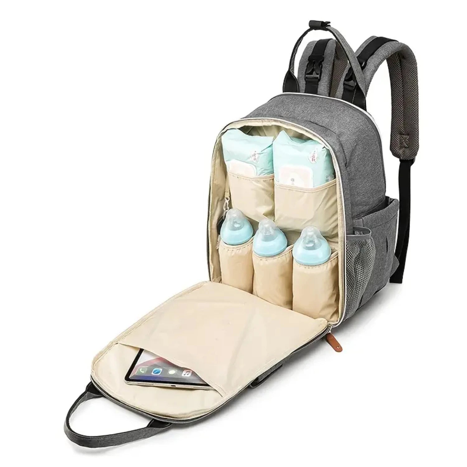 Mantén todo en su lugar gracias a compartimentos específicos para biberones, pañales, toallitas y objetos personales. Encontrarás lo que buscas en segundos, sin rebuscar en el fondo de la bolsa.