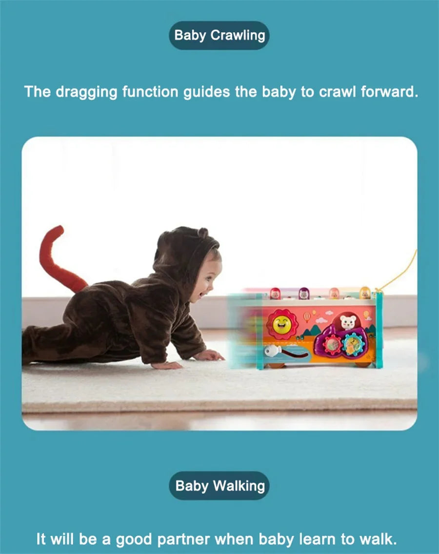 Cada cara del cubo ofrece una actividad distinta: reloj educativo, rompecabezas, martillo y más. Esta variedad mantiene el interés y permite practicar distintas habilidades en una sola pieza compacta.